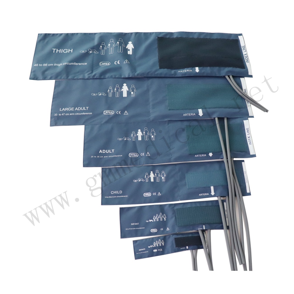 Material:PU usnje Velikost: CF001F-B:Neonate Mehka dvojna cev NIBP manšeta , 6-11cm oboda roke , modra CF002F-B:Dojenčki mehke Dvojna cev NIBP manšeta, 10-19cm Oboda roke ,Modra CF003F- B :Otroška mehka dvojna cev NIBP manšeta ,18-26cm Oboda rok , Modra CF004F- B:Odrasla mehka Dvojna cev NIBP manšeta , 25-35cm Oboda rok , Modra CF004LF-B :Velika odrasla mehka Dual Tube Nibp Manšeta, 33-47cm Obseg rok ,Modra CF004TF-B :THIGH mehka Dvojna cev NIBP Manšeta,46-66cm Krog roke , Modra