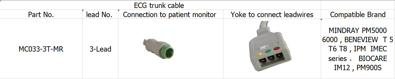 EKG kabel 3-svinčni prtljažnik za BENEVIEW T5 T6 T8, BIOCARE IM12, PM900S