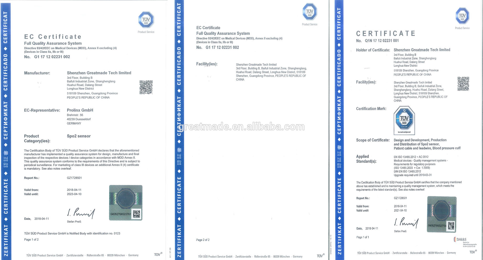 Shenzhen Greatmade Tech LTD Shenzhen Greatmade Tech LTD je profesionalen proizvajalec medicinskega kabla, ki se široko uporablja z večparametrskim monitorjem bolnikov, pulznim oksimetrom, napravo EKG, monterjem krvnega tlaka, elektrokirurško enoto. Na tem področju imamo 10 let izkušenj. Imamo lastno tovarno v celinskem Shenzhenu na Kitajskem in imamo popolno proizvodno napravo in preskusno napravo. Prav tako gradimo strokovno raziskovalno in razvojno ekipo za zadovoljevanje različnih potreb trga. Naša vrhunska kakovost, ugodna cena in premišljena storitev so pripomogli k stalni podpori naših nacionalnih in mednarodnih strank.