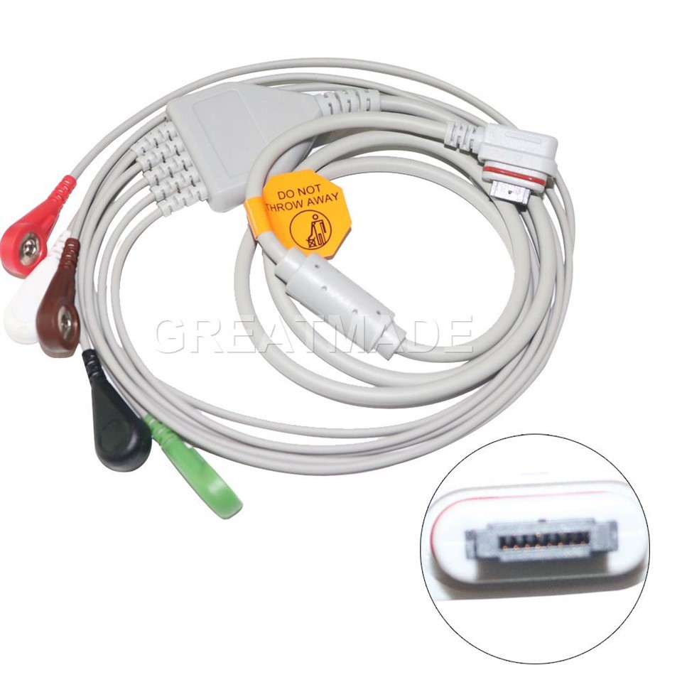 Združljivz: oem no . 2008594-003 5- svinčeno holter ecg kabel svinčev za ge seer luč, 2 kanal (5-ld), aha, snap