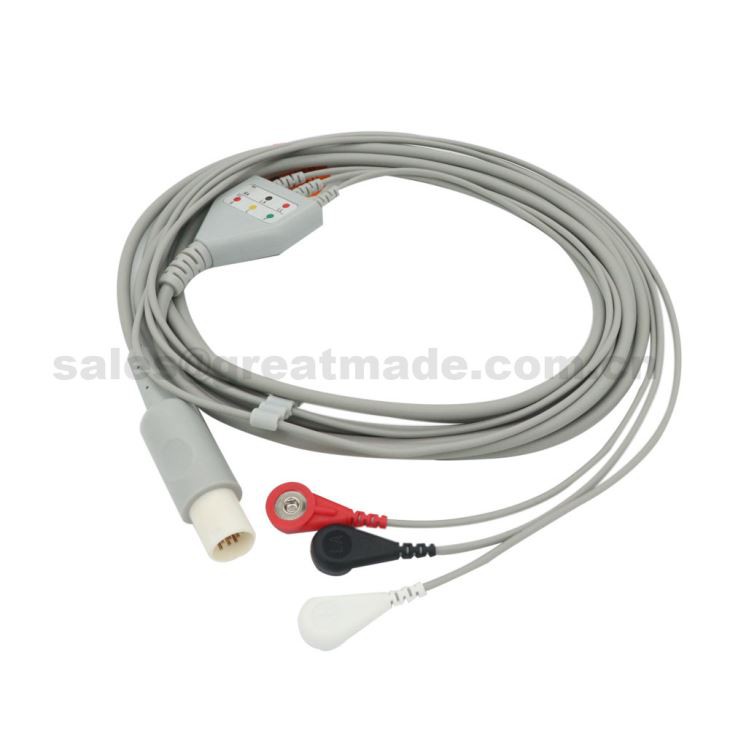 Enokotni EKG kabel s 3-vodilnimi vodniki, združljiv s Hellige SCP 844, SCP 851, SCP 852, SCS 804 za monitor bolnika, AHA, Snap