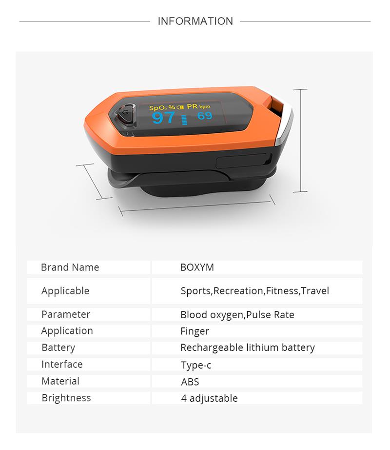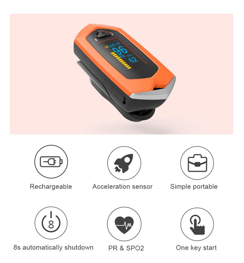 Ena ključna zvezda, z možnostjo ponovnega polnjenja, senzor pospeška, samodejni izklop 8s, merjenje PR in SPO2, preprost prenosni