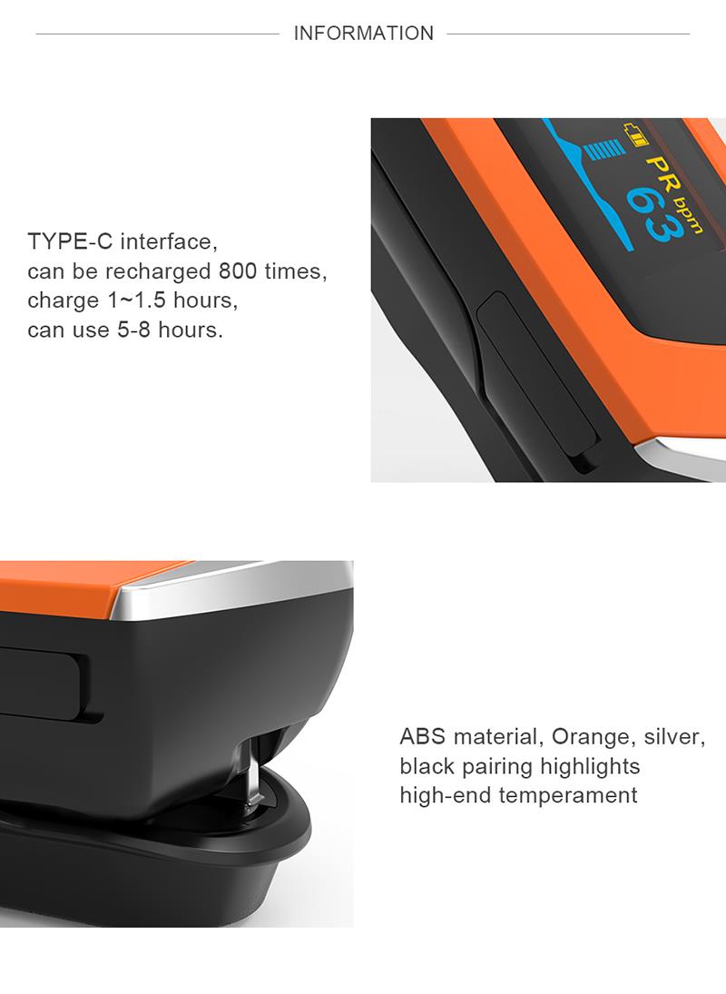 Inovativni medicinski pripomoček z neinvazivnimi in neprekinjenimi funkcijami za odkrivanje SPO2 arterije in PR arterije. biti prenosni.